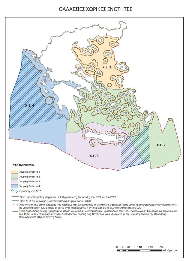 Dün sabah saatlerinde Yunanistan Dışişleri Bakanlığı ile Çevre ve Güç Bakanlıkları tarafından da bir açıklama yapılarak ilgili kurumların Deniz Mekânsal Planlama çalışmalarını tamamladığı duyuruldu ve resmî bir harita yayımlandı. Yunanistan makamlarından yapılan açıklamada “Ülkemiz birinci sefer deniz alanlarının düzenlenmesine ait kuralları belirliyor” denildi.