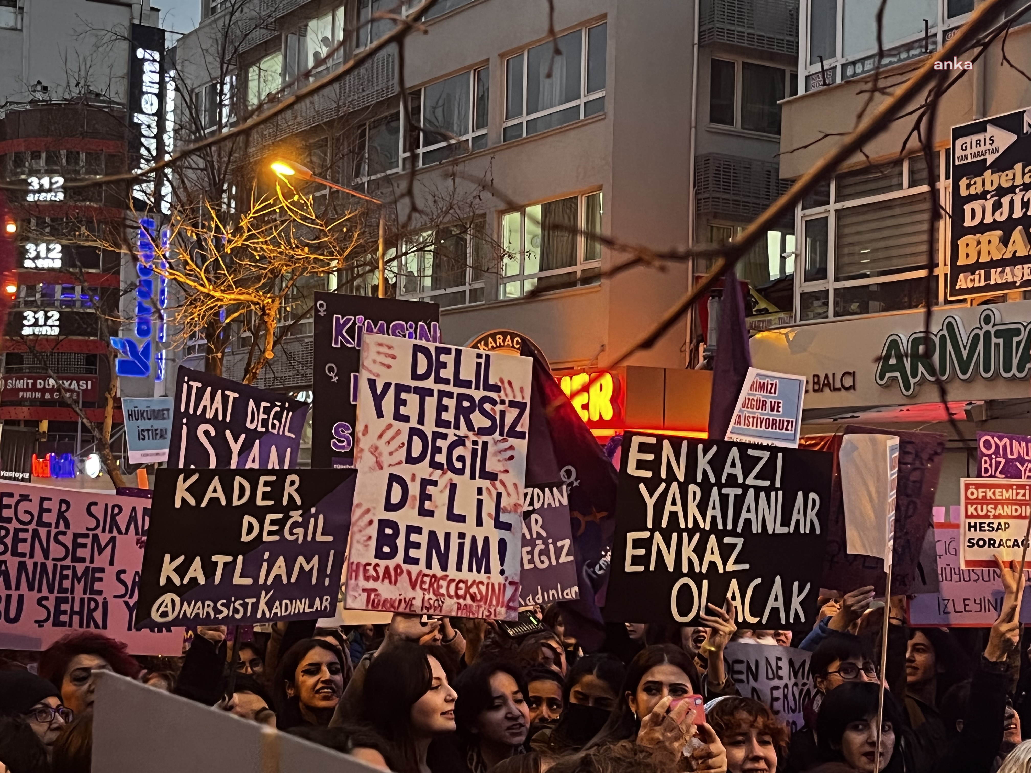 Binbir emek ve bedelle elde ettiğimiz eş başkanlık, İstanbul Mukavelesi, Kürtaj hakkı ve daha birçok kazanımımızı gasp etmek isteyen, saray ve kayyum rejimine karşı alanlardayız. Vücudumuzun cinselliğimizin erkekler tarafından tahakküm altına alınmasına müsaade vermeyeceğiz. Çocuk, yaşlı, hasta bakımını üstümüze yıkan patriarka ve erkek devletle çaba etmeye devam edeceğiz. Bayan gayretinin yarattığı tüm birikim ve pahaları ortadan kaldırıp yerine kendi gerici, erkek hükümran zihniyetini kurumsallaştırmak isteyenlere geçit vermeyeceğiz. Buradan haykırıyoruz, bize uygulanan her türlü şiddete ve zorbalığa karşı tekrar dayanışmayı büyütüyoruz. Feminist isyanımızla birlikte tüm gücümüzle o patriarkayı yıkacağımızı yeniden ve tekrar haykırıyoruz. Erkek devletin, erkek adaletin ve erkek sistemin tüm araçlarını birbirimizden güç alarak, birbirimizi savunarak, gözeterek ve yaşatarak un ufak edeceğiz.” (ANKA)