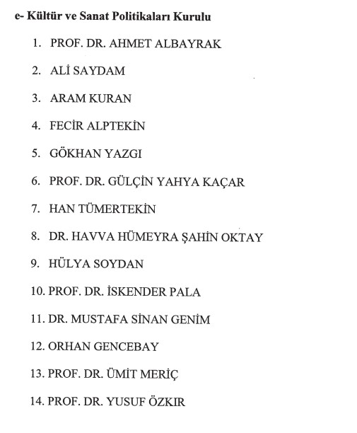Kültür ve Sanat Politikaları Kurulu:
