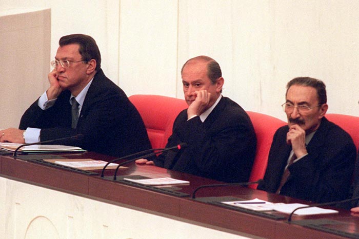 57. Koasliyon Hükümeti’nin Başbakanı Bülent Ecevit ve Başbakan Yardımcıları Develt Bahçeli ile Mesut Yılmaz